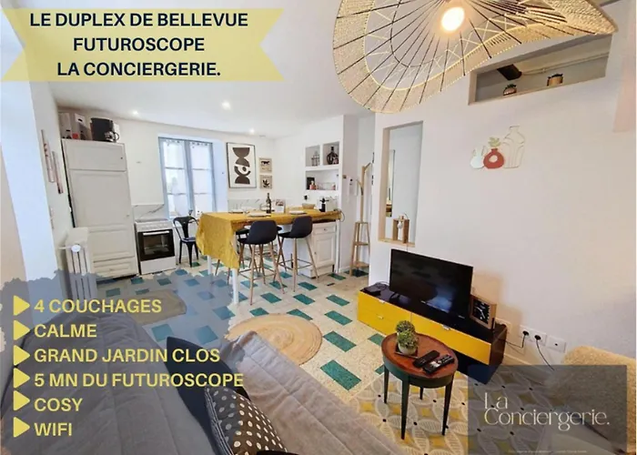 Le Duplex De Bellevue - Futuroscope - La Conciergerie. Apartamento Jaunay-Clan ofrece Wi-Fi, servicio de conserjería y se encuentra a una distancia de 4 km de Chateau de Dissay. Desde el apartamento de 50 m^2 podrás llegar a Arthur, the 4D Adventure, que está a 25 minutos a pie.